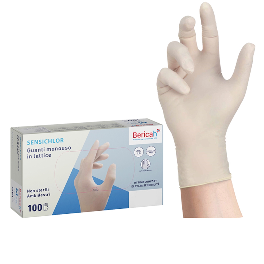 - Guanti in lattice senza polvere: comfort, elasticità e aderenza, senza rischio di allergeni volatili.