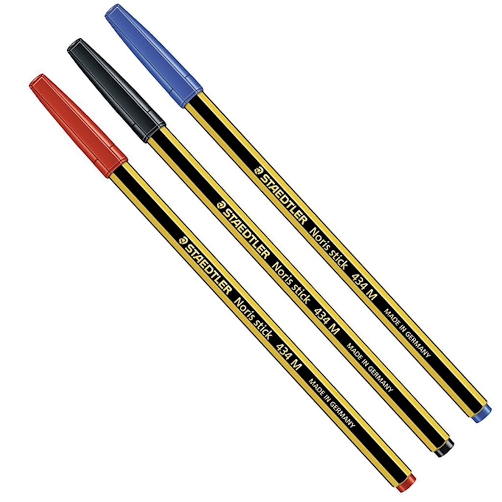 - La Staedtler Noris Stick 434 (blu, nera, rossa), sinonimo di precisione tedesca e lunga durata.