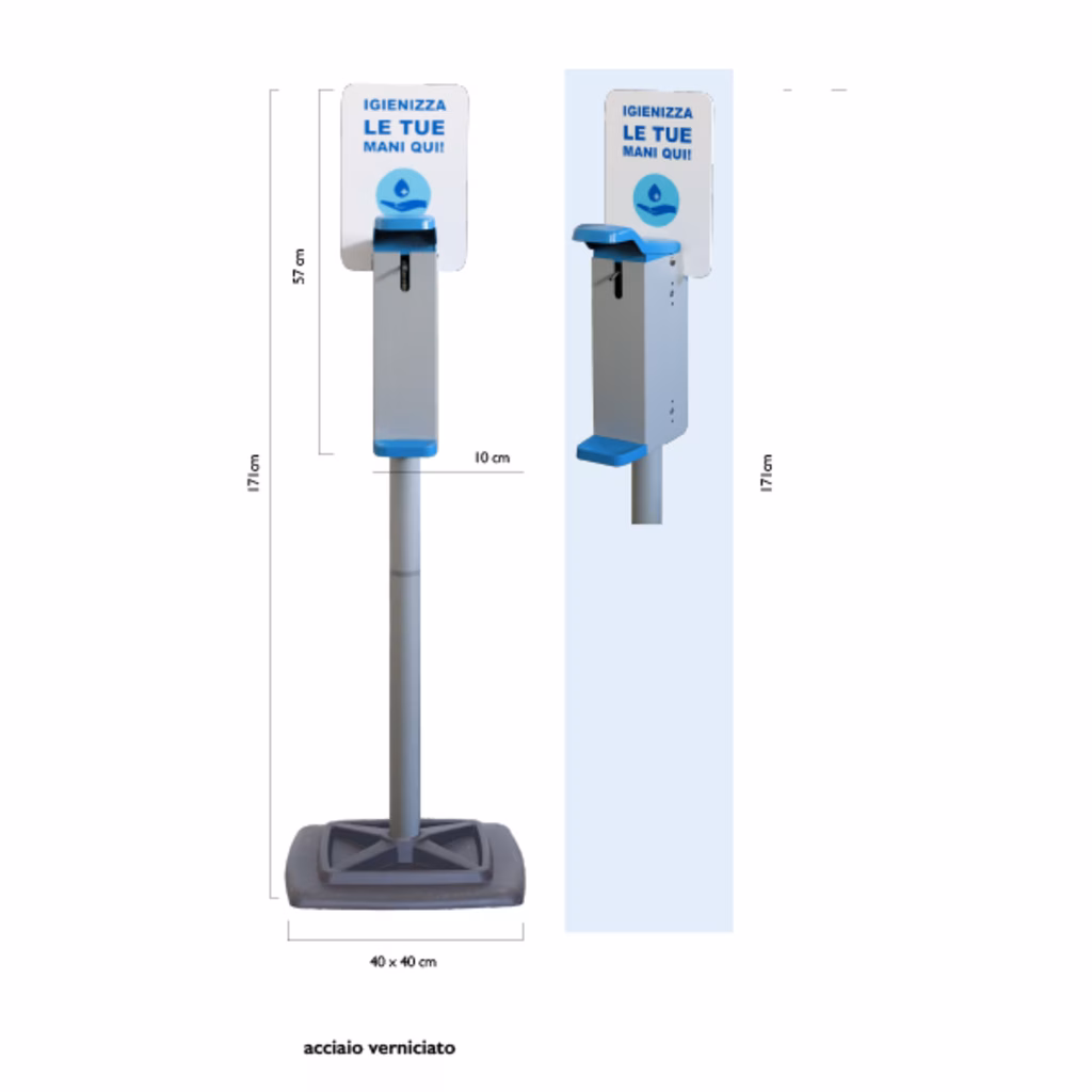 Piantana in acciaio verniciato con dispenser a gomito per sapone liquido e gel